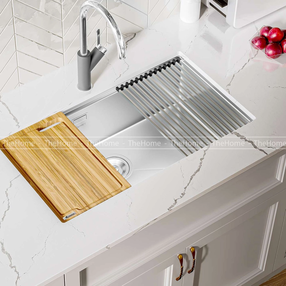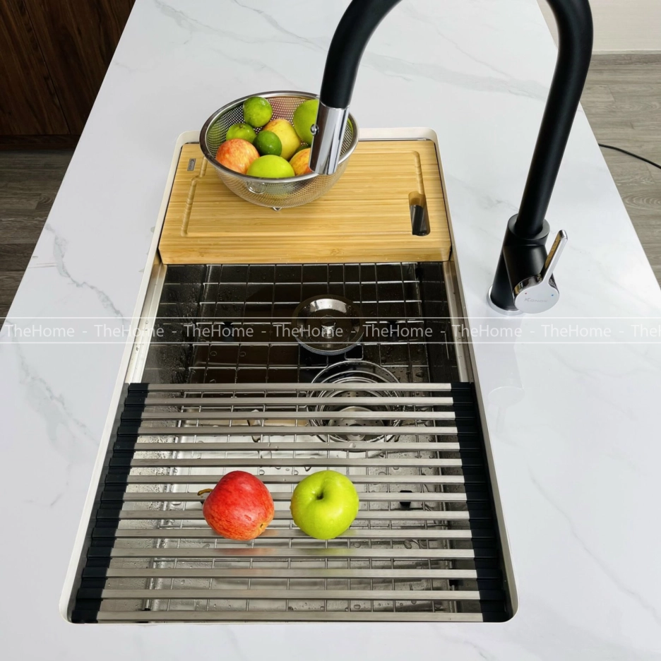 - Dòng chậu hạ bậc – tích hợp công năng: thớt gỗ, rollmat