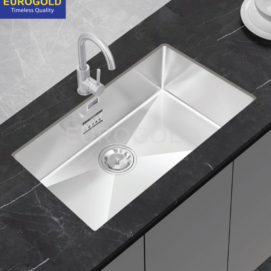- Bề mặt sáng bóng, bền đẹp: Bề mặt chậu được xử lý thủ công, tạo nên lớp sáng bóng tinh tế, giữ vẻ đẹp dài lâu nhờ công nghệ chống xước vượt trội, dập tạo hạt độc quyền Eurogold. Điều này không chỉ làm nổi bật không gian bếp mà còn tăng cường độ bền cho sản phẩm.