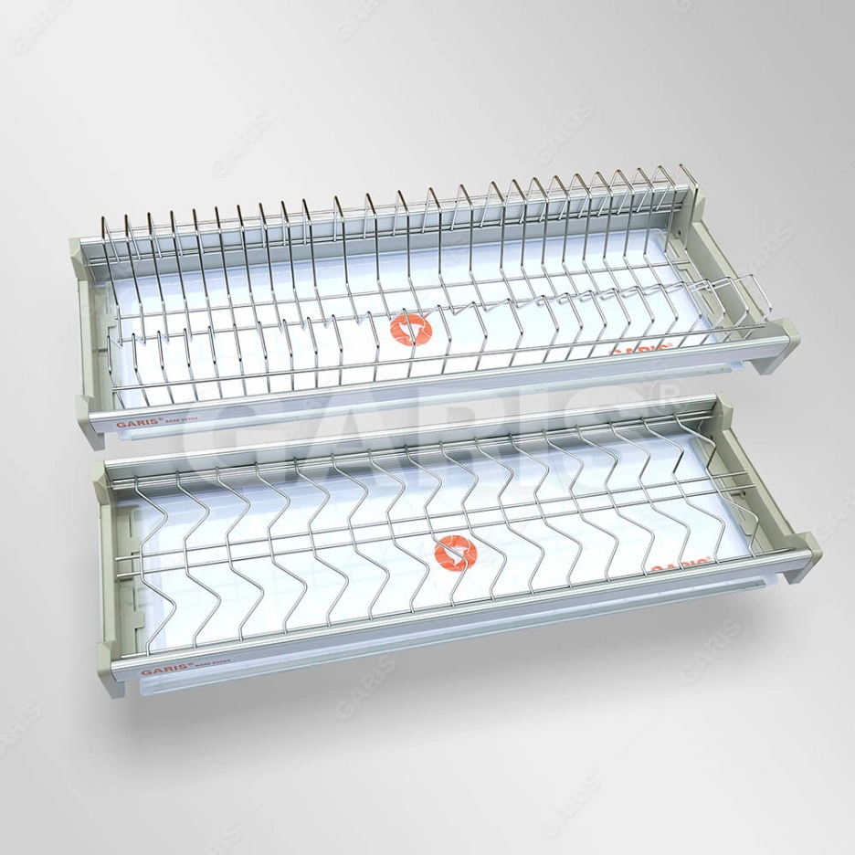 Giá bát đĩa inox nan 2 tầng cố định cho tủ bếp trên Garis được thiết kế và hoàn thiện tinh xảo với nhiều loại kích thước rộng tủ bếp trên khác nhau từ 600mm, 700mm, 800mm đến 900 mm đáp ứng các lại tủ từ nhỏ như căn hộ đến biệt thự.