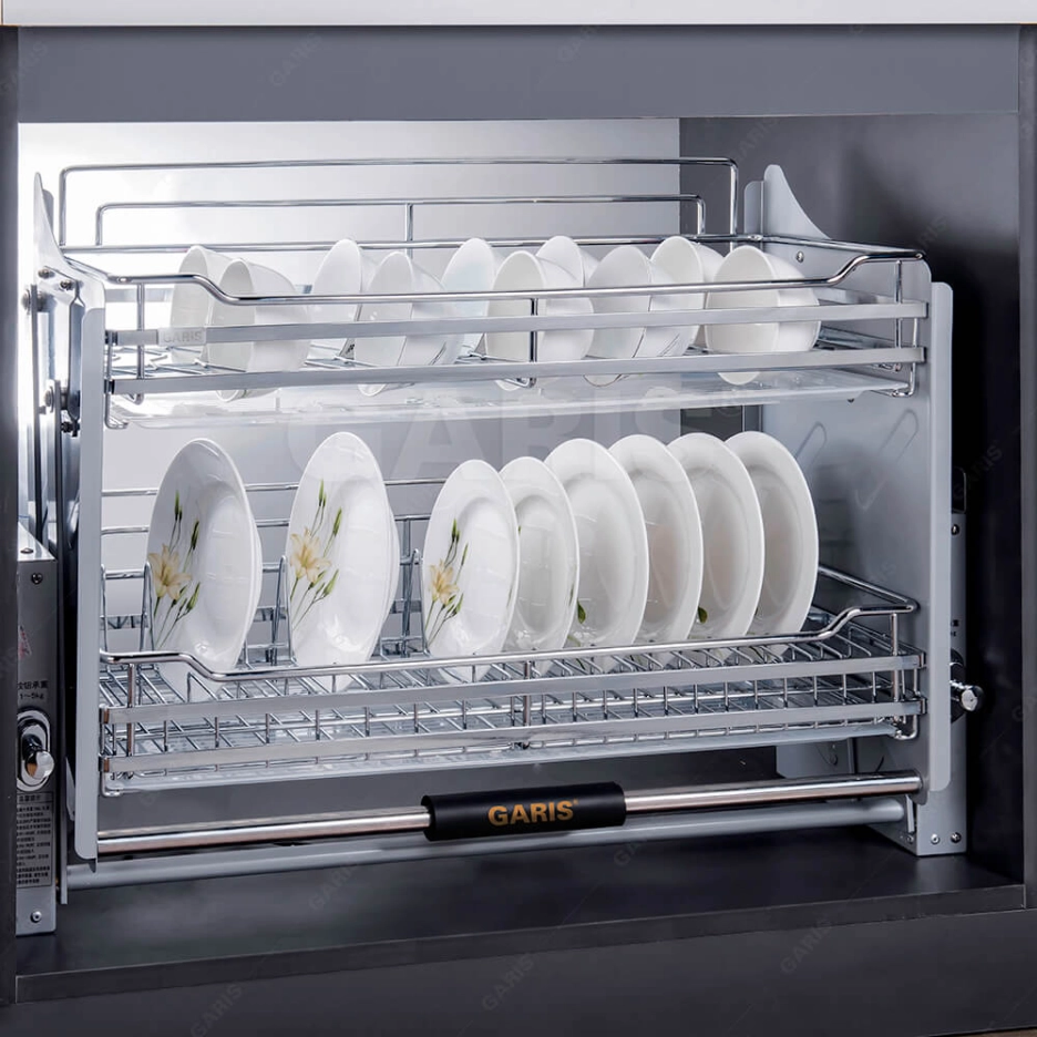 - Sản phẩm giá bát nâng hạ chính hãng được Garis thiết kế với nhiều kích cỡ khác nhau nên bạn sẽ dễ dàng tìm một sản phẩm thật sự phù hợp với tủ bếp của nhà mình.