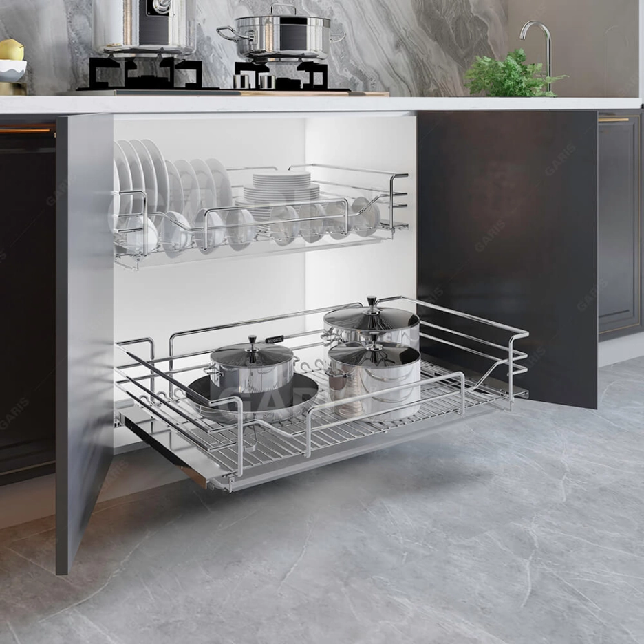 Phụ kiện tủ bếp là loại phụ kiện không thể thiếu trong căn bếp của mỗi gia đình. Giá bát đĩa xoong nồi nan oval thép phủ nano 5 lớp – ray trượt giảm chấn thuộc dòng phụ kiện giá để xoong nồi bát đĩa cao cấp của hãng Garis.