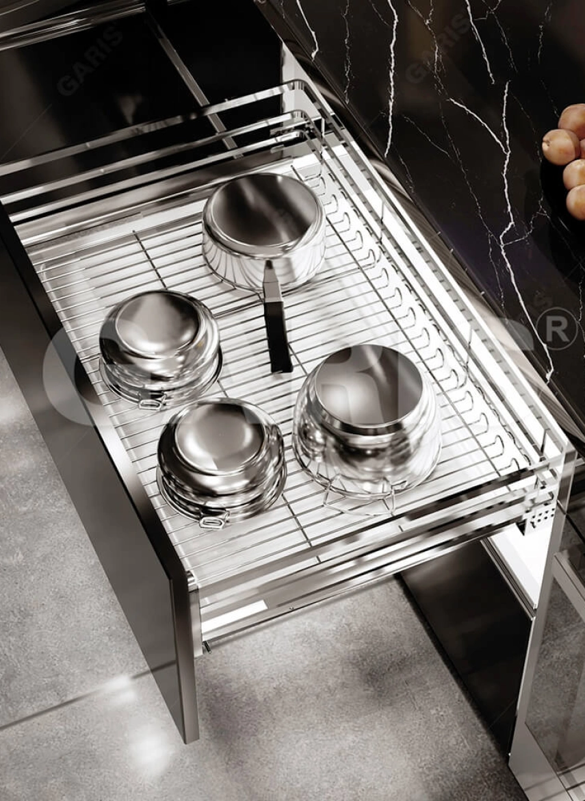 Giá xoong nồi là phụ kiện tủ bếp đóng vai trò rất quan trọng trong phòng bếp của mỗi gia đình. Giá để xoong nồi thường được thiết kế để gắn phía trong tủ bếp, giúp gia đình sắp xếp các loại bát đĩa phục vụ việc nấu nướng 1 cách gọn gàng, đảm bảo vệ sinh.