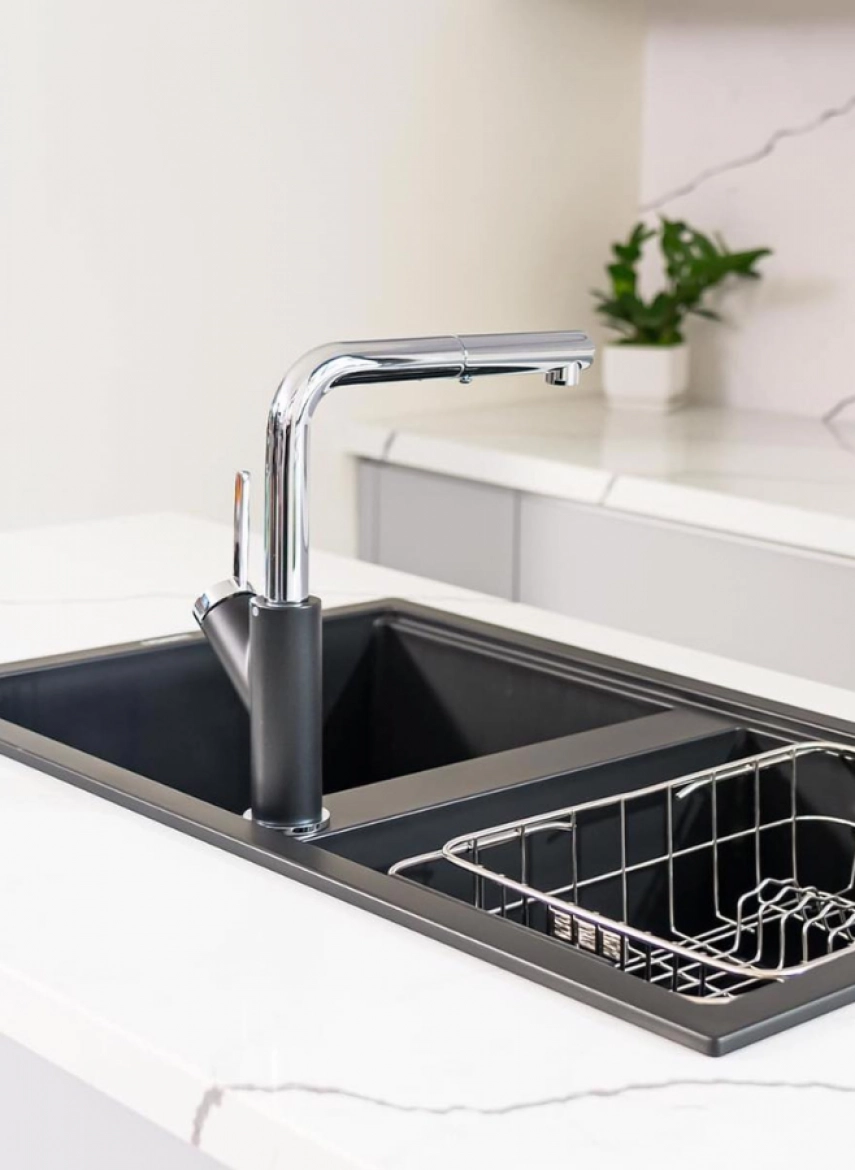 - Tay vòi ngang tối ưu không gian bàn bếp