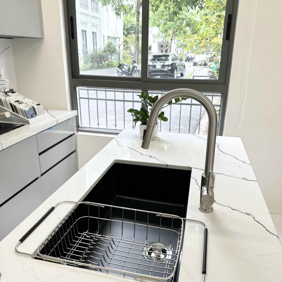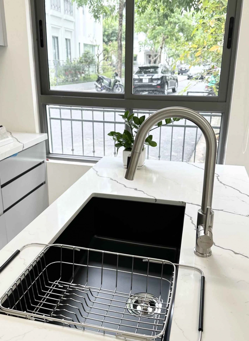 - Tay vòi ngang tối ưu không gian bàn bếp